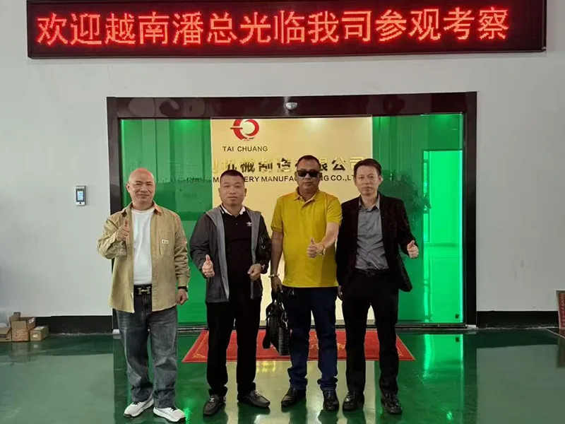 あらゆる問題や質問に対応するサービス チームを保証し、生産ラインの稼働時間を最大限に確保します。 Taichuang は、顧客が効率的かつ自信を持って機械を操作できるよう、販売前のコンサルティングから長期のアフターサービスに至るまで、フルサイクルのサポートを提供することに尽力しています。
