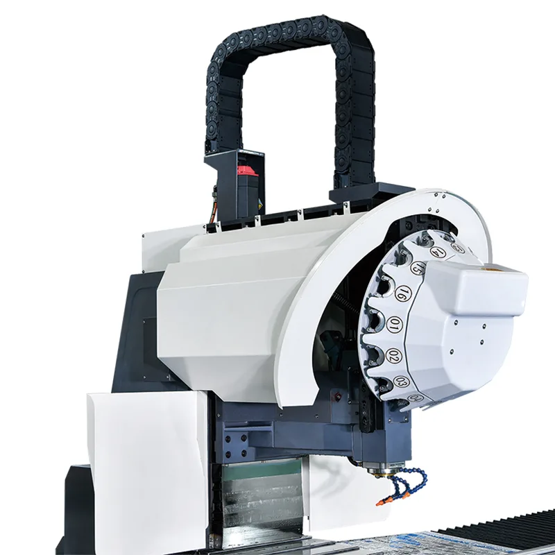 ガントリーブリッジは主軸と加工ヘッドをサポートし、重切削作業中に安定した位置決めを保証します。