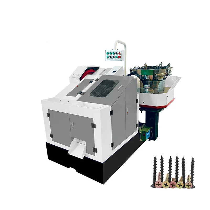 このギアボックス付き振動フィーダー式ねじ切りローリングマシンは、台中工場の製品の 1 つであり、振動フィーダーを使用してワークピースを連続的かつ組織的な順序でローリングゾーンにガイドします。ねじの成形は冷間圧延によって完了し、精密に位置合わせされたダイスが材料を切断することなくねじの輪郭を成形します。